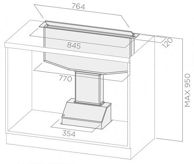 Вид монтажу витяжкиВ стільницю