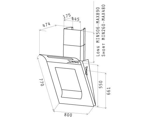 Ширина витяжки80